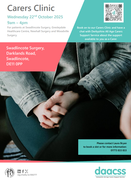 - VENUE – Swadlincote Surgery, Darklands Road, Swadlincote, DE11 0PP